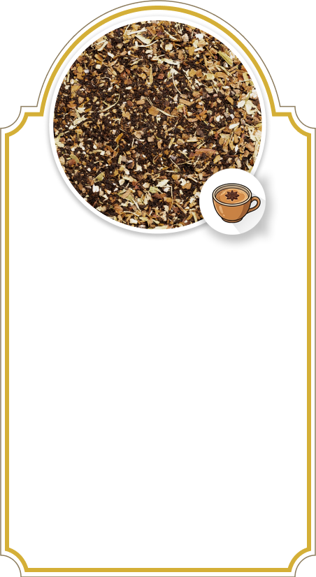 Description: An aromatic blend inspired by South Asian tradition. Robust black tea layered with warming spices creates a rich, comforting cup that feels both familiar and deeply satisfying.